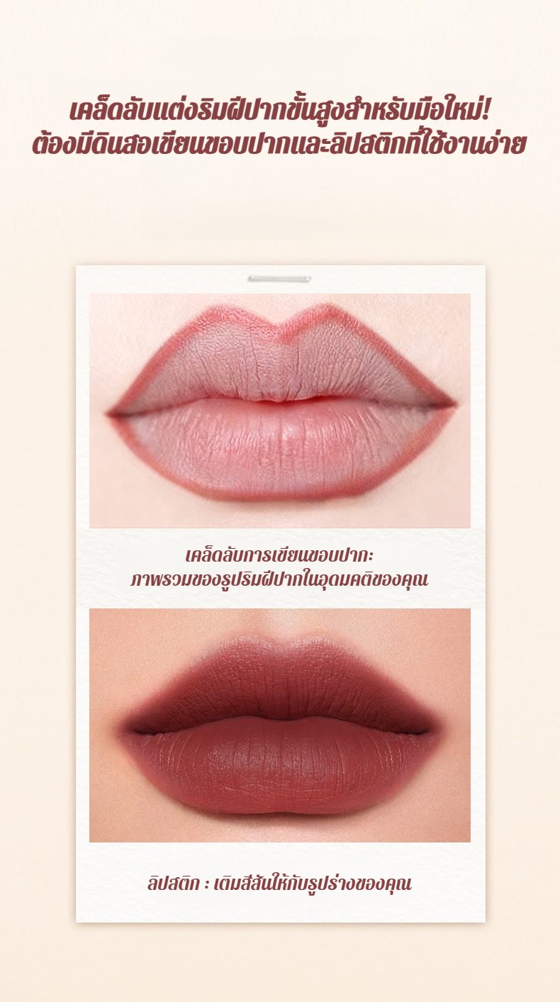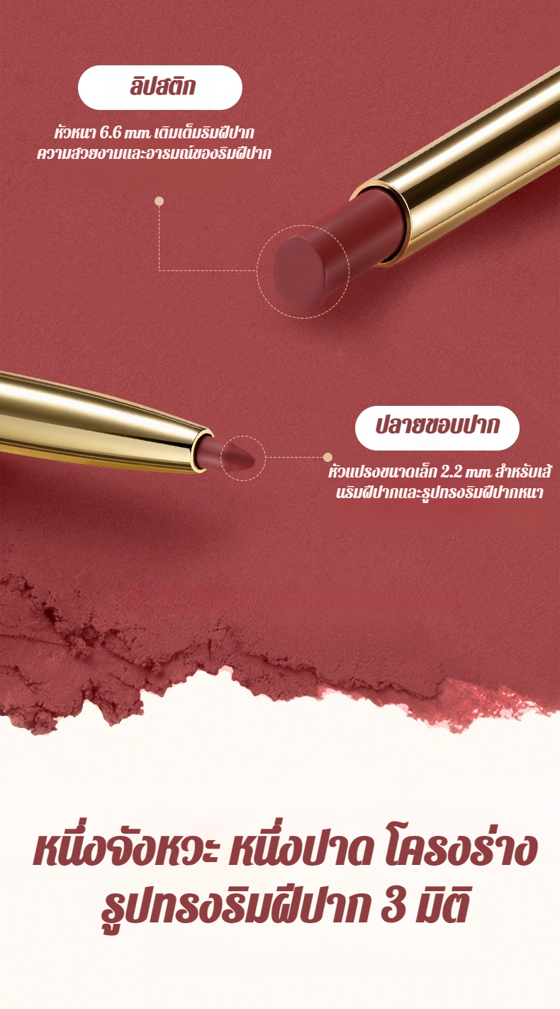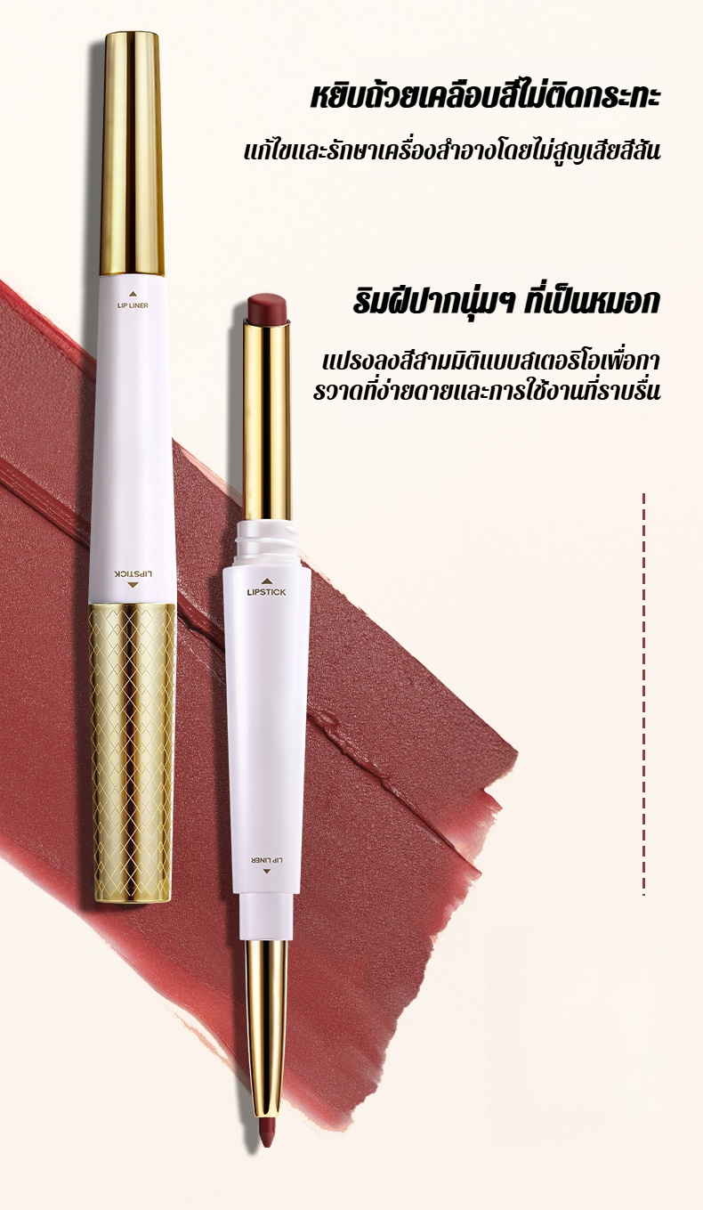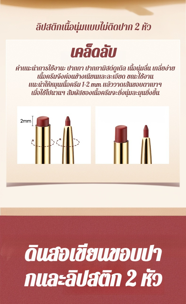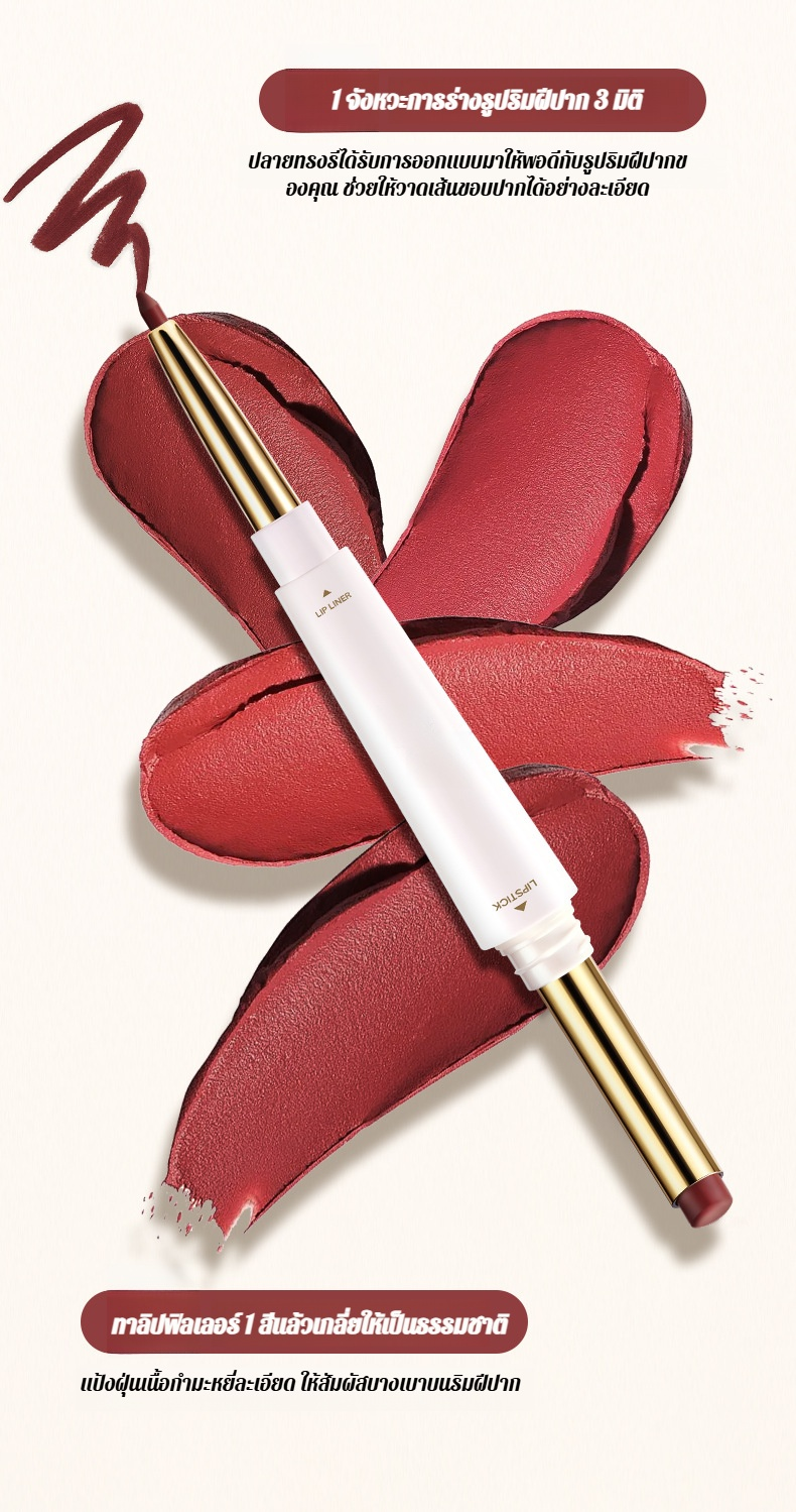 【น้ำไม่ติดแก้วและไม่ซีดจาง】ลิปไลเนอร์เนื้อแมทท์นุ่มละมุนแบบ 2 หัว