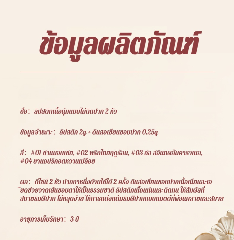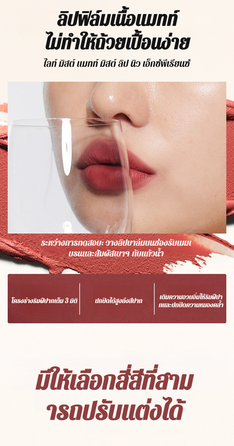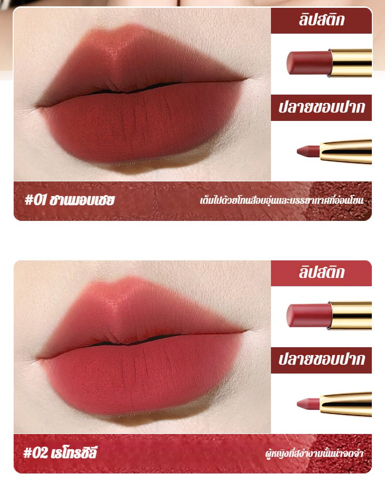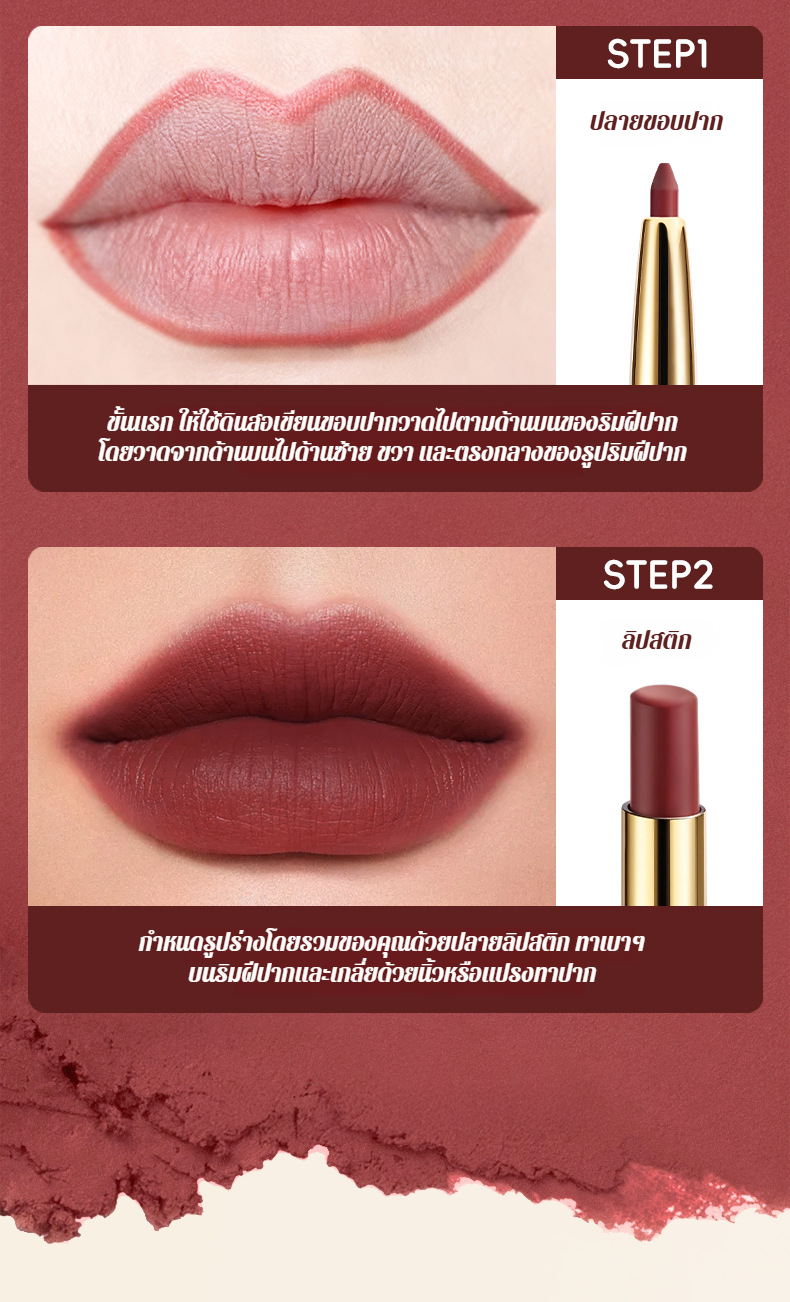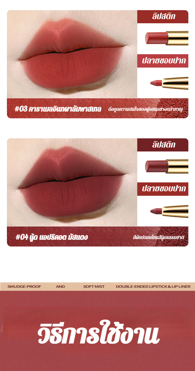 【น้ำไม่ติดแก้วและไม่ซีดจาง】ลิปไลเนอร์เนื้อแมทท์นุ่มละมุนแบบ 2 หัว